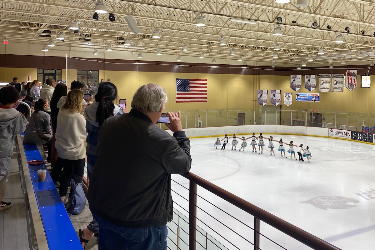 More than 100 skaters, representing 10 different Southern California rinks, traveled, most alongside their guardians, to Goleta last week to compete in Ice in Paradise’s first-ever open figure-skating competition. By 10 a.m., the lobby of the rink had transformed into a dressing room — duffel bags were scattered the floor, and hairspray filled the air as parents put the finishing touches on their children before they took the ice.