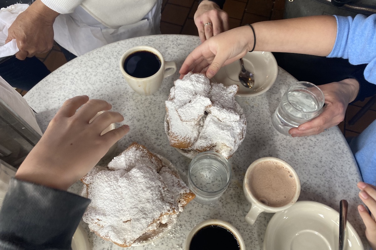 There were beignets at Café du Monde, of course, where we opted to sit down and get served by the hustling waiters rather than wait in the long to-go line; lemongrass crab Caesar, spring som tam salad, and fried catfish with pickles and “zippy” ranch at Marjie’s Grill, where casual, complex cocktails completed the backyard vibe; multiple servings of crawfish noodles at Peche Seafood Grill, where you can’t go wrong on the menu, even when it comes to catfish swimming in a pickled-greens broth; and cracklins and chili butter oysters at pork specialist Cochon, where my daughter sat a seat that had just been vacated by Nicolas Cage.