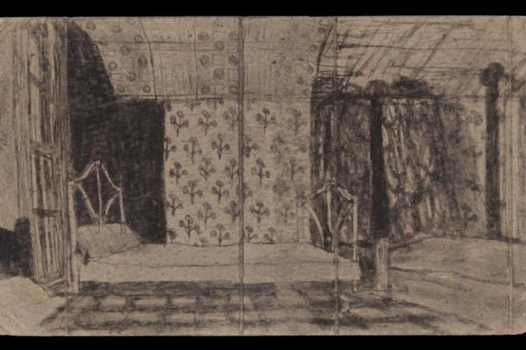 Castle (1899–1977) was born deaf in rural Idaho, before his nurturing family moved to Boise. He was illiterate in the traditional sense but studied imagery in comic books, newspapers, and magazines — as well as images by Old Masters — to inform his self-taught illustrative sensibilities, honing his own private artistic world as an expressive outlet. Material-wise, he mostly used soot from wood-burning stoves mixed with his saliva, often drawn on found paper scraps with Q-tips and sticks to create drawings mostly from his early memories of farm life and interior spaces of his youth.