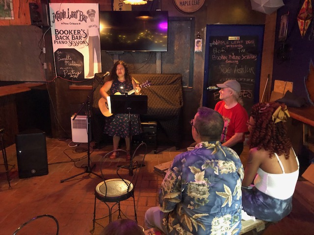 One place I was grateful for cold air was the Maple Leaf Bar, where I was the featured reader at the Everette Maddox Poetry Series. The Maple Leaf Bar hosts the longest continuously running poetry series in North America. The series started in 1979 and gained popularity around the same time that James Booker, the one-eyed piano virtuoso, frequently played there. Everette Maddox, a well-loved poet, popularized the series until his early death in 1989. It is rumored he lived at the bar and wrote his poetry on bar napkins. The Maple Leaf’s owner, Hank Staples, collected the poems in a paper sack. Most of Everette’s work was published posthumously, and since his passing, Nancy Harris has been running the weekly series that includes a popular open mic.