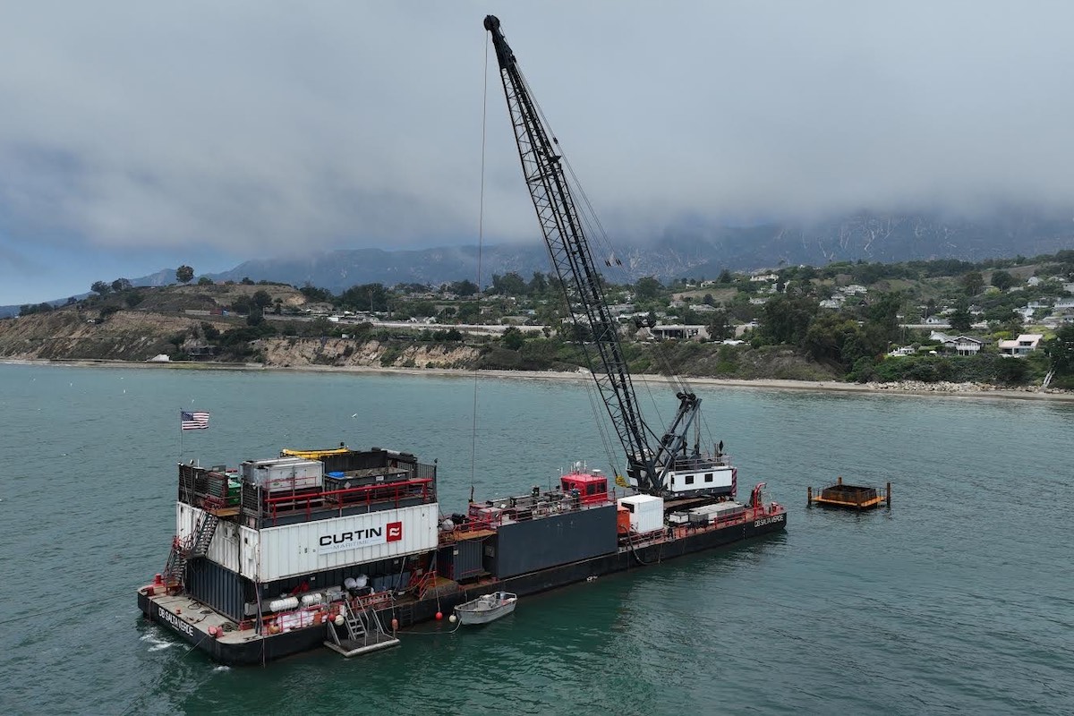 However, efforts are underway to permanently cap these wells and prevent further leaks. On Monday, the process of “re-abandonment” began for Treadwell Pier oil wells 1 & 5, managed by offshore engineering team 2H Offshore, with assistance for permits from Beacon-West Energy Group. The Curtin Maritime barge departed from Long Beach and headed to Summerland on Sunday, arriving Monday morning to begin the capping process.