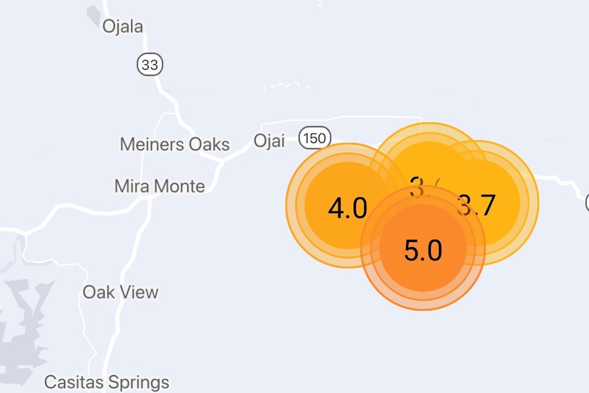 However, since this story was first posted, additional aftershocks have been registered in Ojai by the USGS. The most recent was a 3.7 magnitude quake at 3:08 p.m. east-southeast of the city.