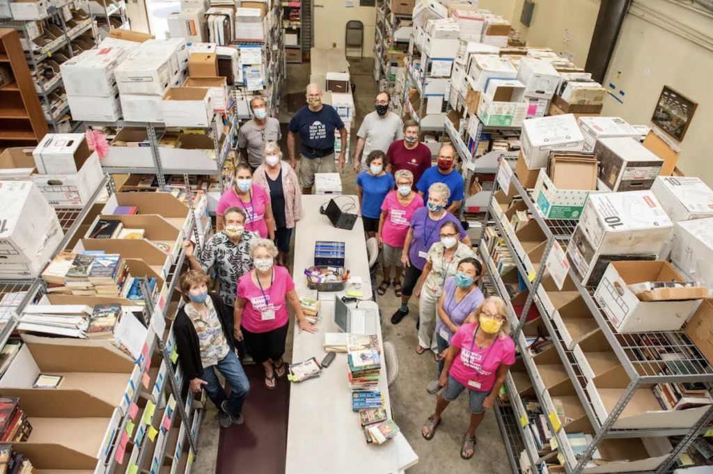 Expect to find more than 100,000 items for sale, including more than 50 different categories of books — from banned books to large print, mystery, romance, sci-fi, fantasy, children’s, westerns, true crime, erotica, biography, history, art, poetry, cookbooks, how-tos and so much more — along with puzzles, games, music, and movies in various forms. The list truly is daunting. A sneak peek includes titles such as Metaphors Be with You; Sex, Drugs, and Cocoa Puffs; Why My Cat Is More Impressive Than Your Baby; and Snack to Your Heart’s Content.