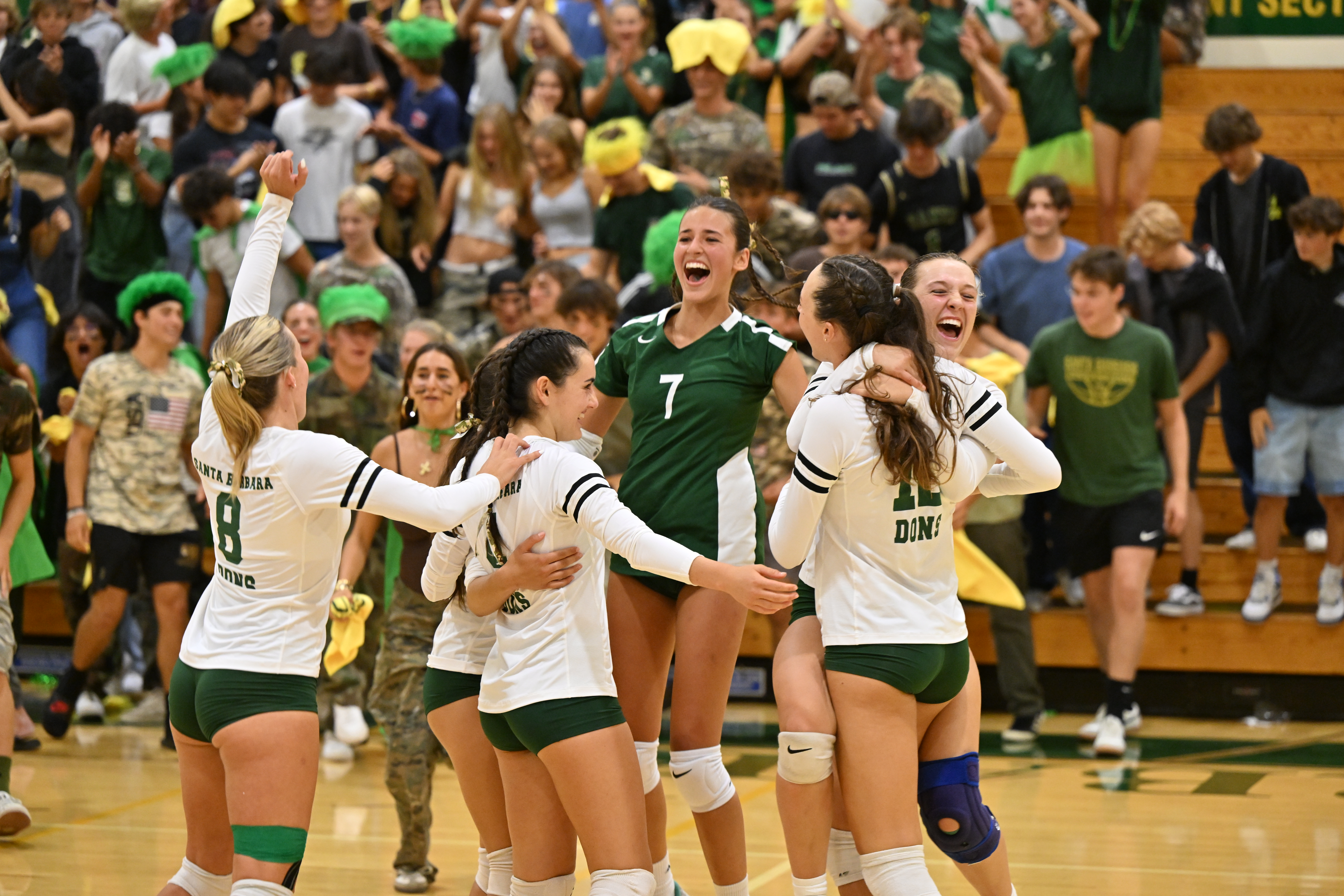 The Dons were cruising in the opening two sets as primary attackers Emmy Werner, Nicole Schuetz, and Augustine Wooten feasted on light resistance at the net, but San Marcos came alive and played inspired volleyball beginning in set three, setting the stage for a thrilling finish.