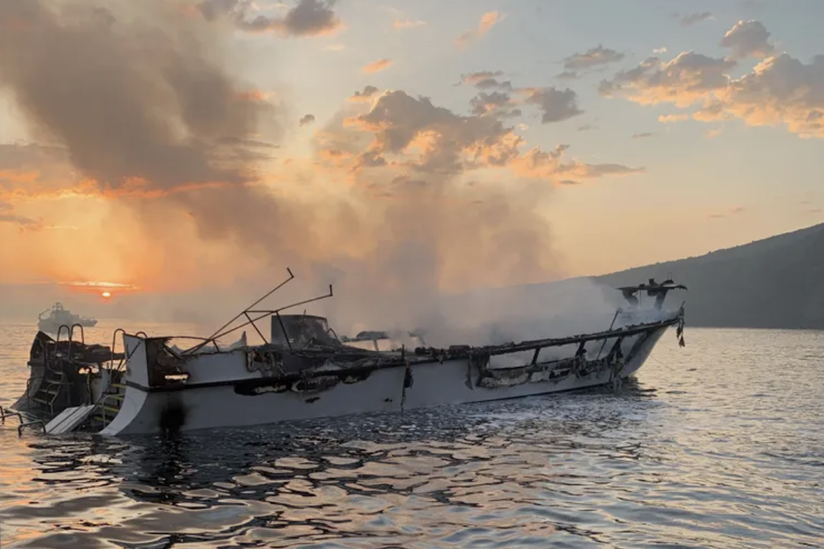 The fire occurred before dawn on September 2, 2019, while the Conception was anchored off Santa Cruz Island at the tail end of a three-day dive trip. Five crew members asleep in the boat’s top deck, including Captain Jerry Boylan, were awakened by shouts of “Fire! Fire!” and managed to escape. The passengers and another crew member trapped below deck by the flames, however, died from smoke inhalation, according to Santa Barbara County coroner’s reports.