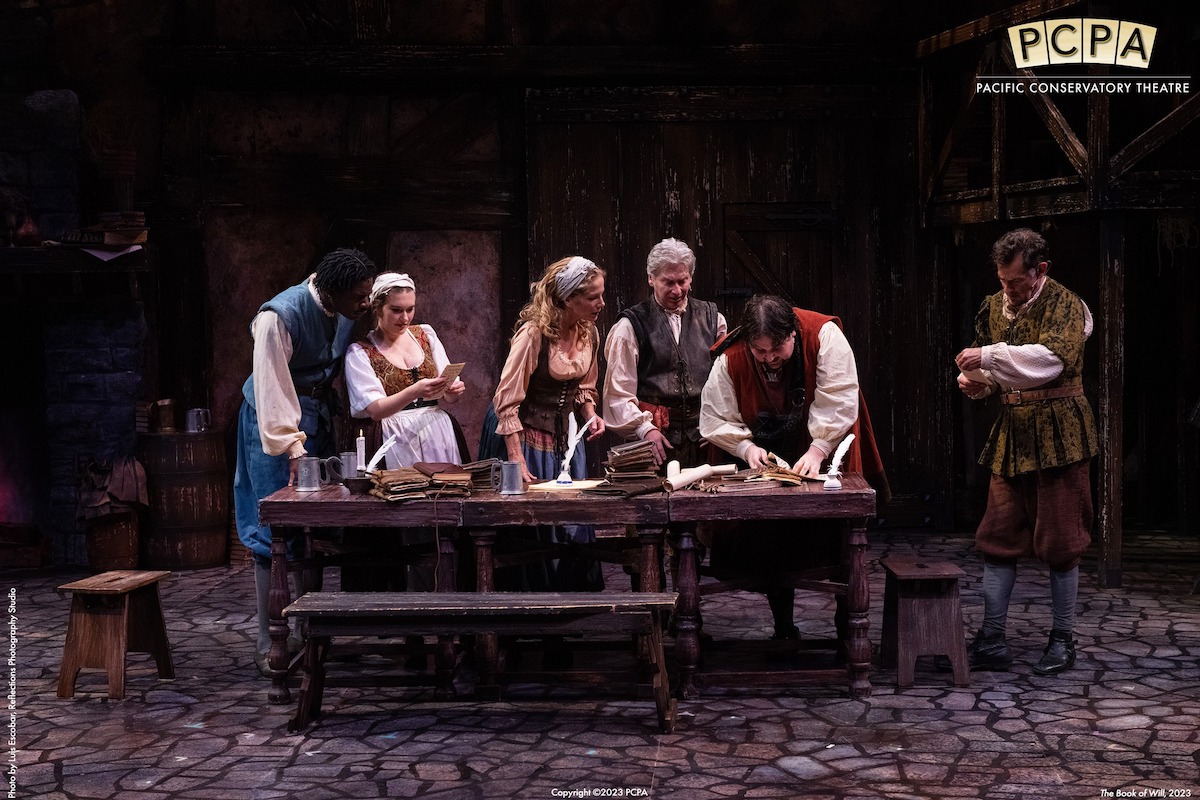 PCPA closes out their summer season of reprise productions at the Solvang Festival Theater with The Book of Will, an affable story of the remaining members of Shakespeare’s acting troupe attempting to posthumously piece together the Bard’s complete works from fragments of plays spread among actors and collectors all over London. Written by Lauren Gunderson, The Book of Will is droll and diverting, especially for audience members with an affinity for theater history.