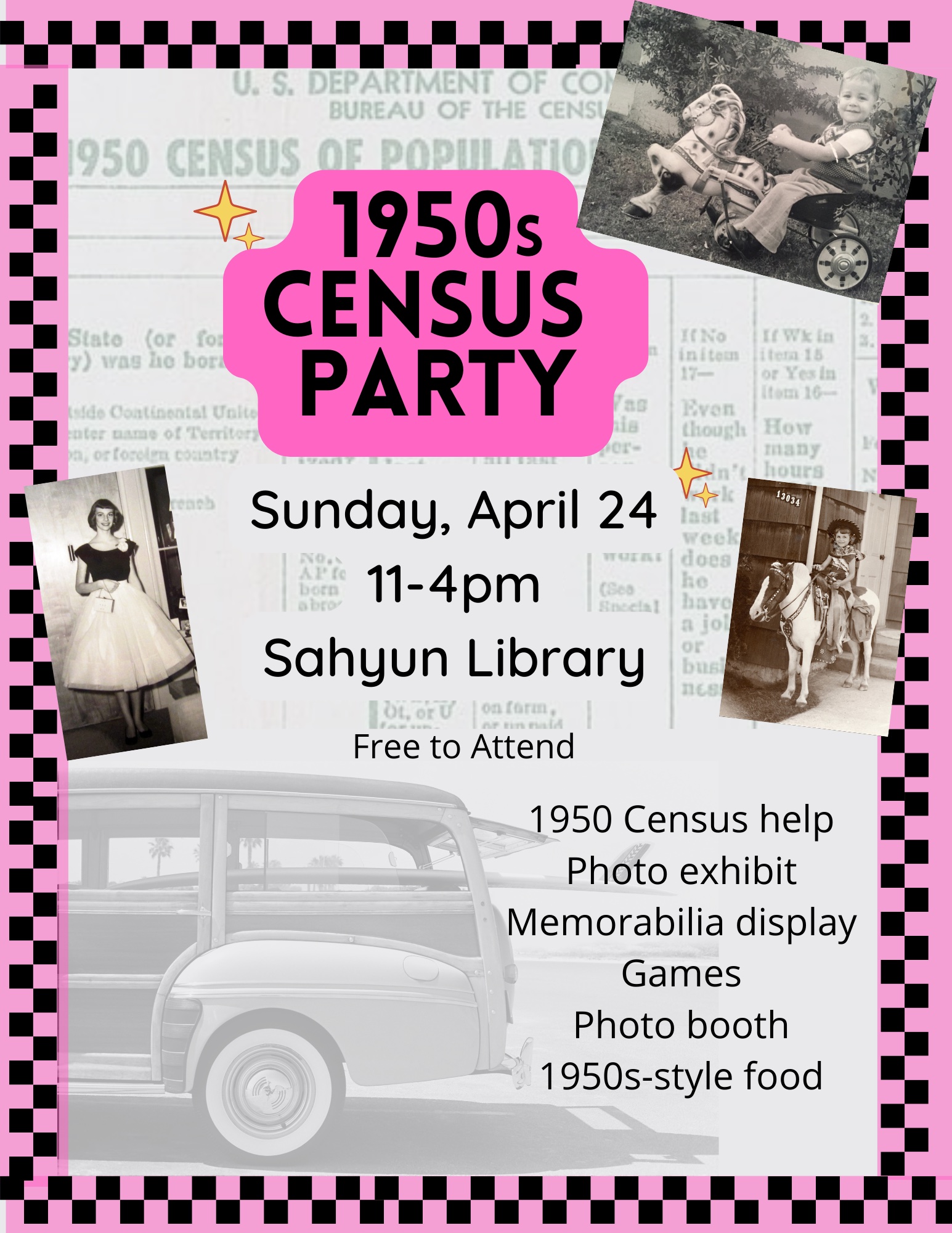 This is a free event and will feature food and fun! We’ll have hot dogs, treats from the 50s, games, a photo display, and memorabilia from the mid-century.