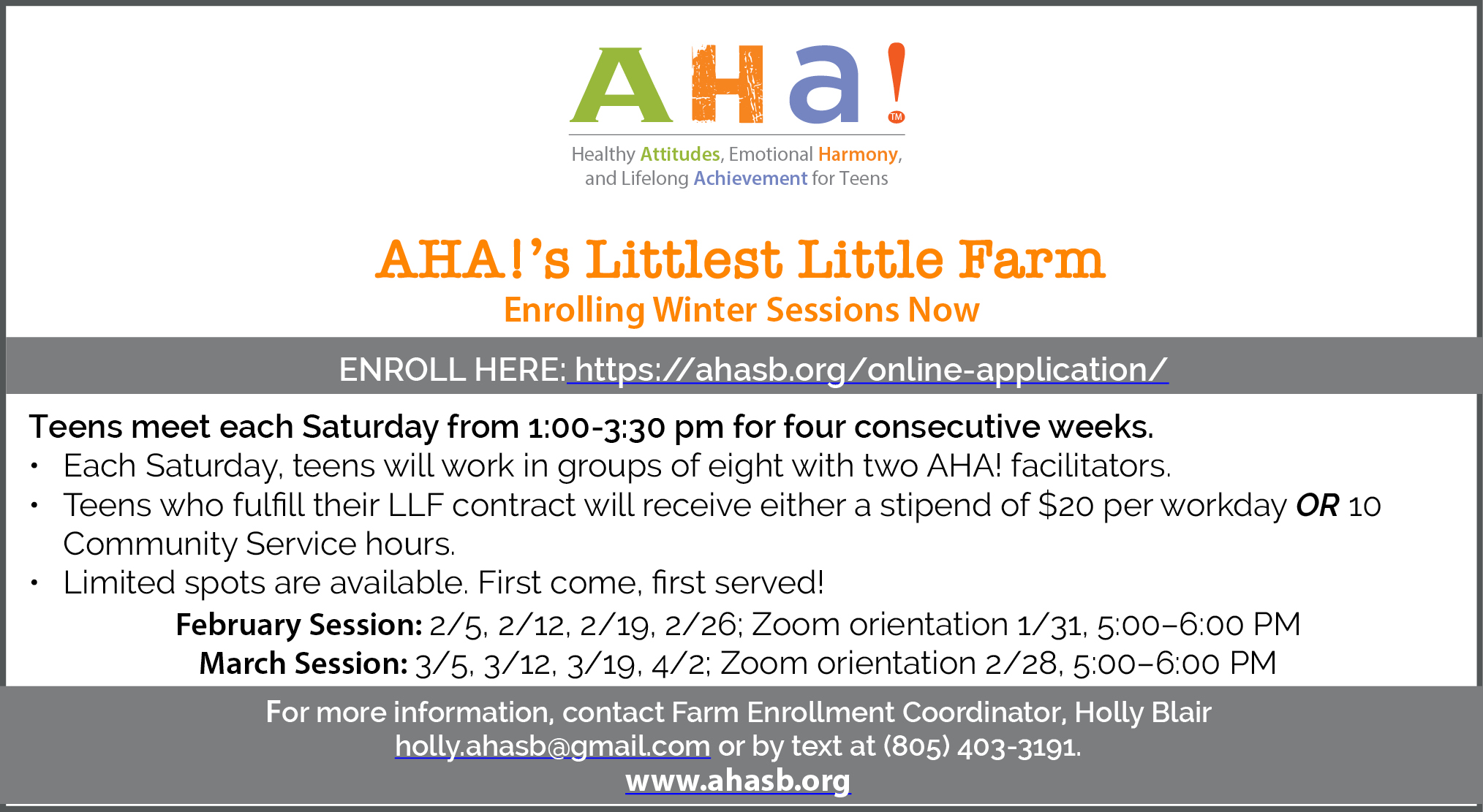 Questions? Contact Holly at 805-403-3191 or holly.ahasb@gmail.com