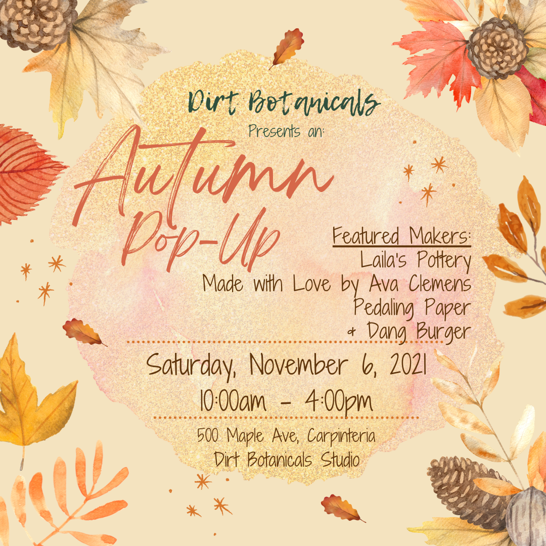 Dirt Botanicals will be hosting a Pop-Up Shop at our Studio at 500 Maple Avenue, #1.