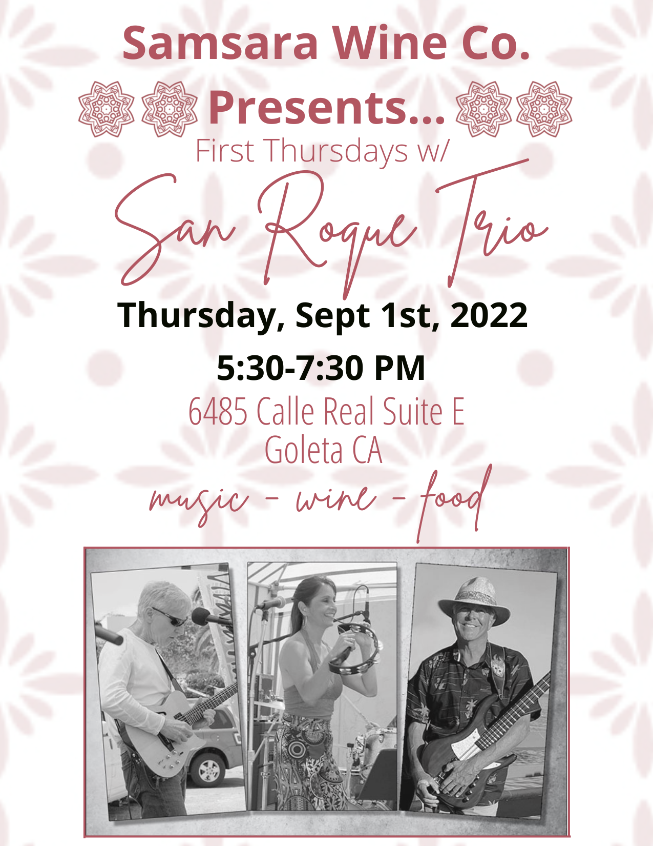 Come join us at our Goleta winery, Thursday Sept 1st from 5:30pm-7:30pm for music by San Roque Trio.
