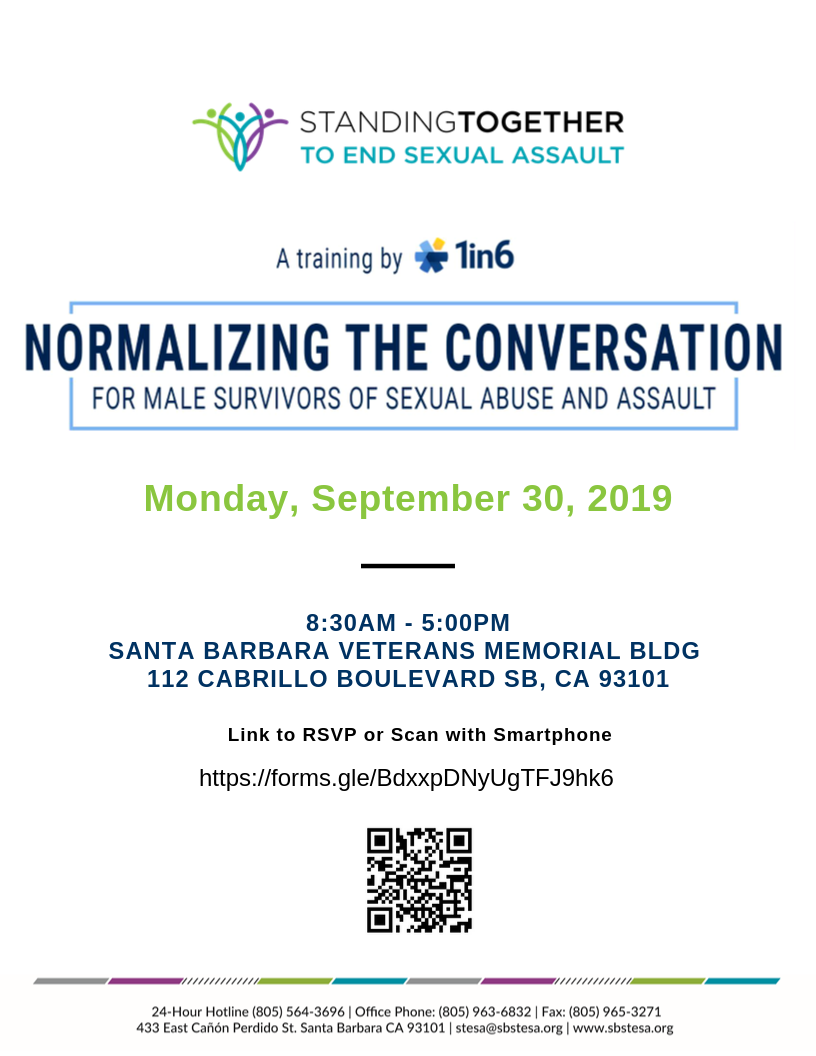 Standing Together to End Sexual Assaults will be hosting a one day clinical training. It Happens, It Matters is an introductory training on male sexual victimization, which offers a primer on the basic concepts, theories, and approaches to working with male survivors to frontline professionals and volunteers. In many respects, the training can serve as a prerequisite for participants wanting to engage in effective intervention strategies with this population.
