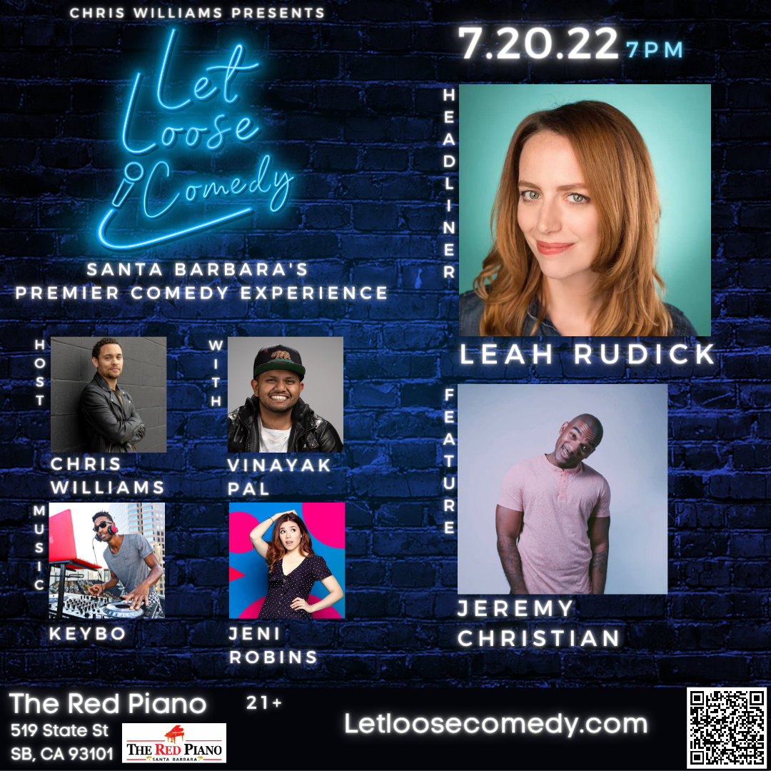 Let Loose Comedy is not your normal Santa Barbara comedy show. We are all about bringing you a high quality comedy experience from the moment you show up until the moment you leave. Our hilarious host and fresh DJ set the night off! Then our comedians do their thing and bring you gut-busting laughs which cements the show to be a night to remember.