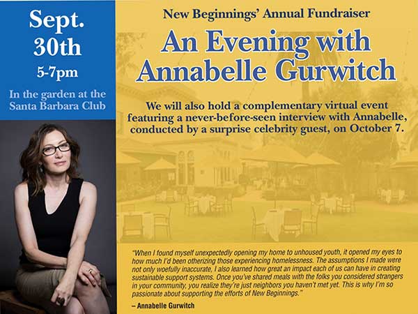 New Beginnings is holding an in-person event for donors on Thursday, September 30th at 5 pm outside in the beautiful patio garden at the Santa Barbara Club.