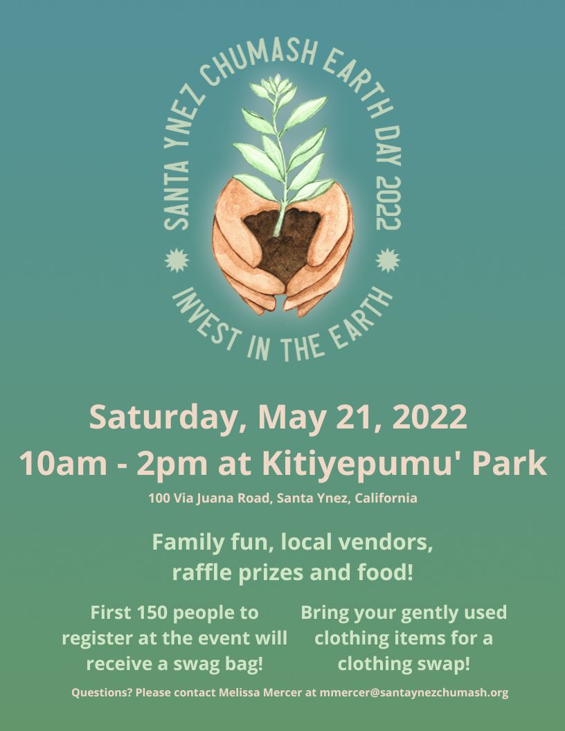 Please join us at Kitiyepumu Park located at 100 Via Juana Road in Santa Ynez on the Chumash reservation for the Chumash Earth Day event.