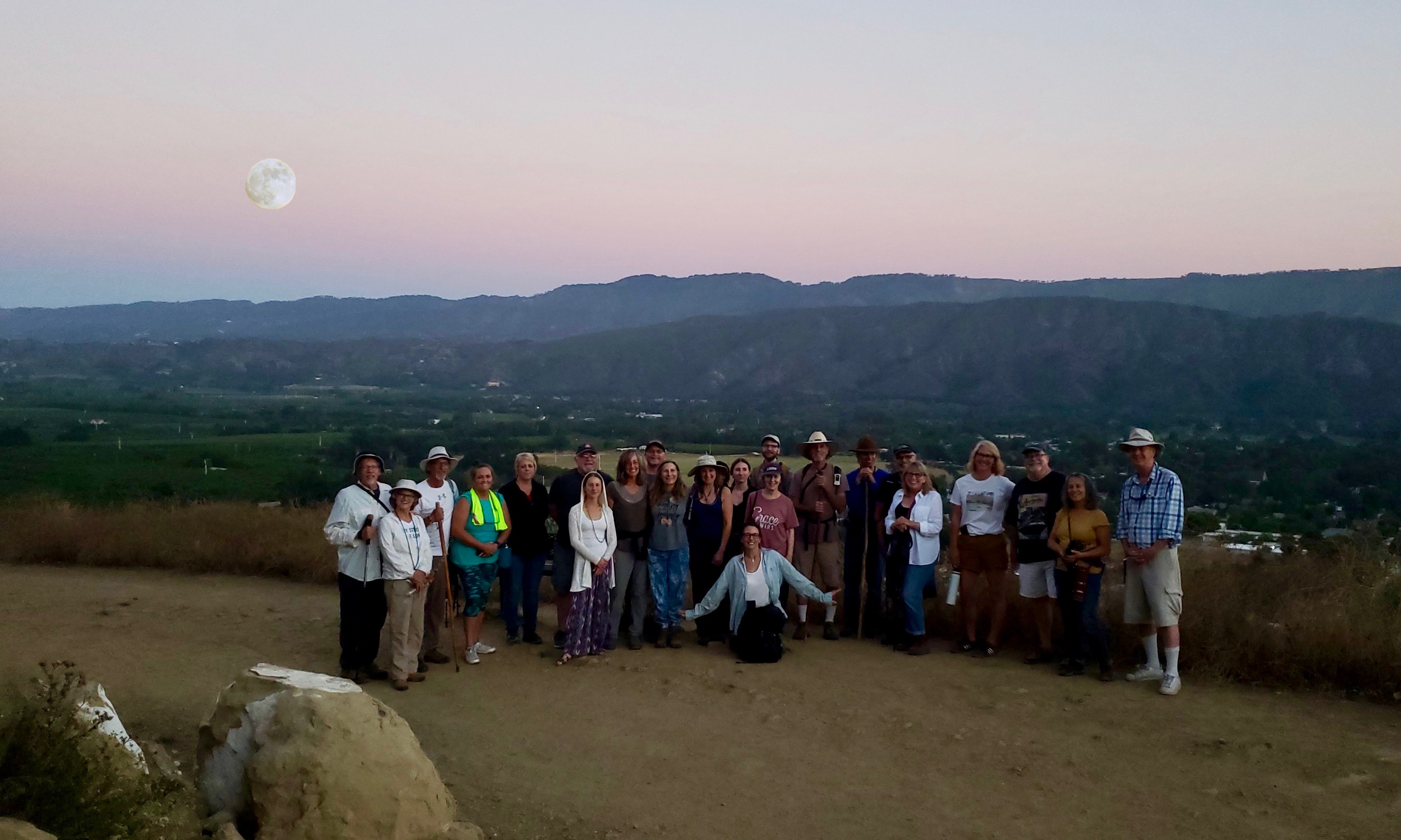 After registering online, those participating will meet at the Park-and-Ride lot in downtown Ojai between 5:30 and 5:45 p.m. and carpool to the trailhead to minimize the crowded parking situation there. They will gradually walk about 1 mile to the vista point, stopping along the way to meet some valuable native plants including Coastal Sagebrush, Elderberry, Purple Sage and Toyon. After witnessing the rising of the moon and setting of the sun, the group will walk back to the trailhead by remaining daylight, moonlight, and flashlight, returning to the Park-and-Ride by 9:00 p.m.