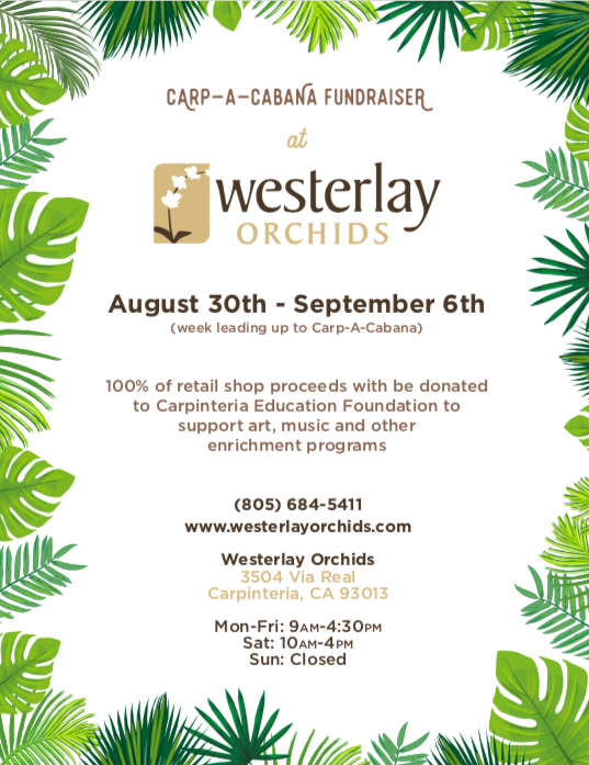 Proceeds from all retail sales collected from August 30th to September 6th at Westerlay’s Retail Showroom will be donated to Carpinteria Education Foundation, the nonprofit fundraising partner of the Carpinteria Unified School District.
