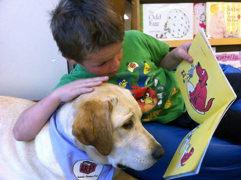 When children read to dogs, they get excited, they get motivated, and their literacy skills improve. The model has proven wildly successful in other parts of the country, and is particularly effective for otherwise shy or reluctant young readers. So this past semester, the local non-profit group All For Animals launched a pilot program at Santa Barbara’s Hope Elementary in which 1st and 2nd graders read to specially trained therapy dogs once a week.