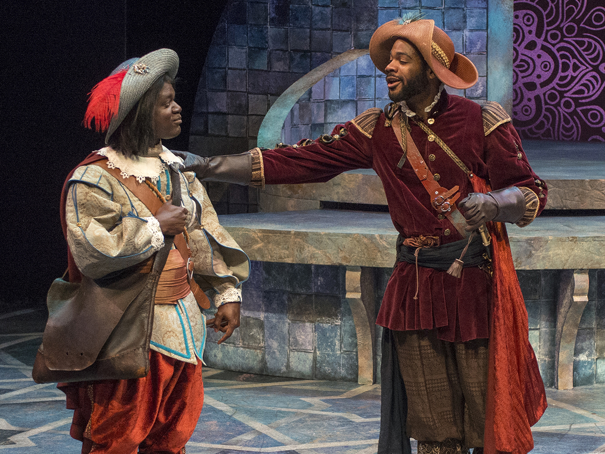 Casesario, who’s in love with Orsino, delivers tidings of the duke’s affection, but Olivia is interested in Caesario, setting up the play’s love triangle. Meanwhile, Olivia’s drunk uncle, Sir Toby (Erik Stein), along with his mistress, Maria (Polly Firestone Walker), and buffoonish buddy, Sir Andrew (George Walker), pranks Olivia’s stuffy steward, Malvolio (Andrew Philpot). The plot thickens when Sebastian arrives in Illyria and is mistaken for Caesario, first by the knights, then by Olivia.