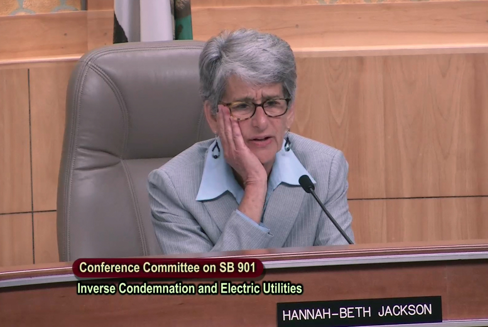 STRICTLY LIABLE: During a Conference Committee hearing, State Senator Hannah-Beth Jackson asked pointed questions of industry reps to keep electric utilities responsible when they cause fires.
